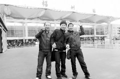 本报讯 (记者 吴恩儿 文/图) 25日中午,在福州火车站,蔡文义、孟志强和关腊腊高兴...